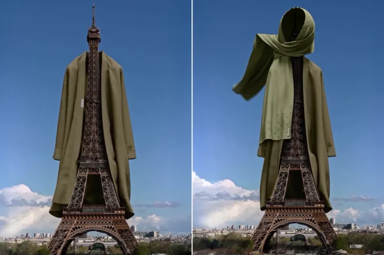 أثار إعلان ترويجي لعلامة الأزياء الهولندية المحتشمة "مرّاشي" جدلاً واسعًا في فرنسا، بعد أن ظهر فيه برج إيفل مغطى بحجاب إسلامي في إشارة رمزية لدعم حرية ارتداء الحجاب.